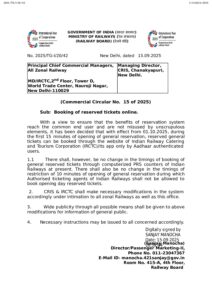 Booking of reserved tickets online CC-15 of 2025 15.09.2025 indianrailwayrules.comBy admin / November 23, 2025 Booking of reserved tickets online CC-15 of 2025 15.09.2025 indianrailwayrules.com