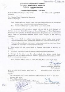 Downgrading of SL class coaches of Special trains as unreserved SL or unreservedreserved second class CC-17 of 2025 19.09.2025 indianrailwayrules.com
