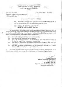In supersession of all the instructions issued regarding earmarking of reservation quota in different Classes for Persons with Disabilities (PwDs/Divyangjans) and their attendant, it has been decided to earmark the following reservation quota for them in those Mail/Express trains in which PwDs have been allowed to book reserved tickets on concession:
