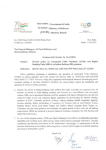 Subject: Revised policy on Automated Teller Machines (ATMs) and Digital Banking Units (DBUs) on Indian Railway (IR) premises.