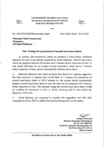 case Zonal Railways do not prepare second reservation charts up to 5 minutes